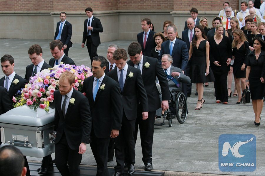 HOUSTON, April 21 (Xinhua) -- Funeral for the late former First Lady Barbara Bush was held Saturday in a Houston church where four former presidents and other dignitaries attended.