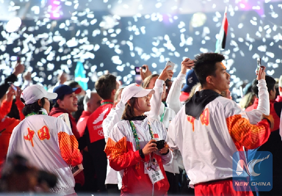 Chinese delegation attends the opening ceremony of the Buenos Aires Youth Olympics on Oct. 7, 2018. (Zhu Zheng/Xinhua)