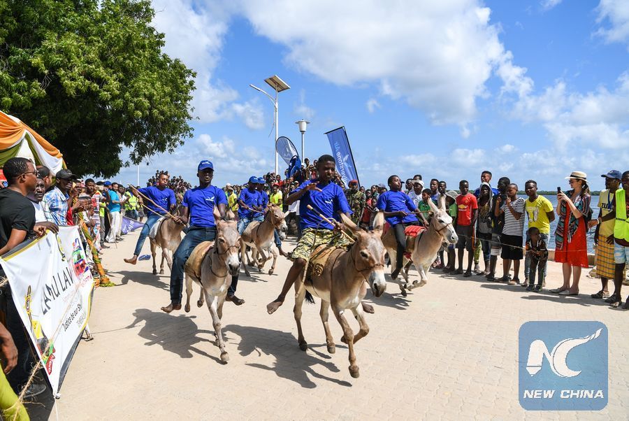 Local people compete in the donkey race during the Lamu Cultural Festival in Lamu, Kenya, Nov. 24, 2018. (Xinhua/Li yan)