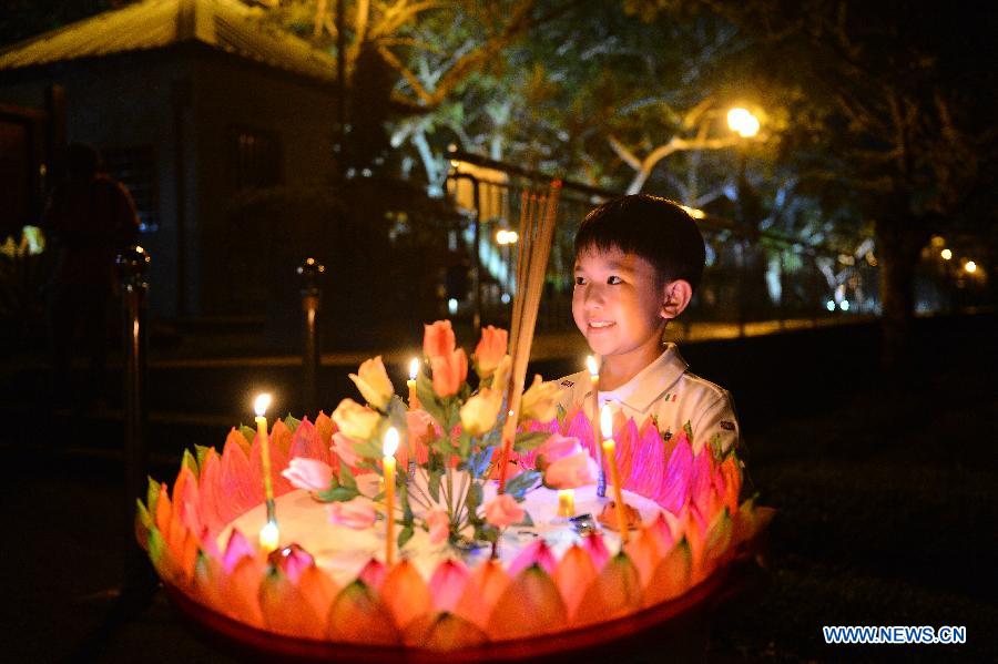 A boy holds a water lantern in Bandar Seri Begawan, capital of Brunei, Nov. 22, 2018. China will hold the Conference on Dialogue of Asian Civilizations starting from May 15. Under the theme of "exchanges and mutual learning among Asian civilizations and a community with a shared future," the conference includes an opening ceremony and sub-forums. (Xinhua/Jeffrey Wong)