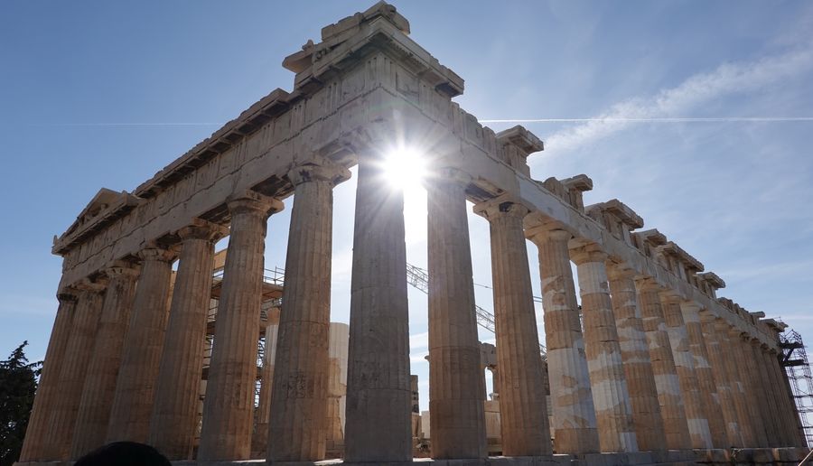 Photo taken on Nov. 7, 2019 shows a view of the Parthenon on the Acropolis in Athens, Greece. (Xinhua/Lai Xiangdong)