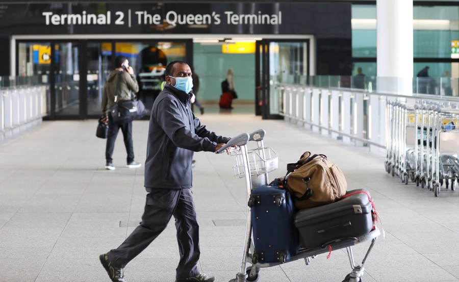 Passengers walk in Heathrow Airport in London, Britain, March 18, 2022. (Xinhua/Li Ying)