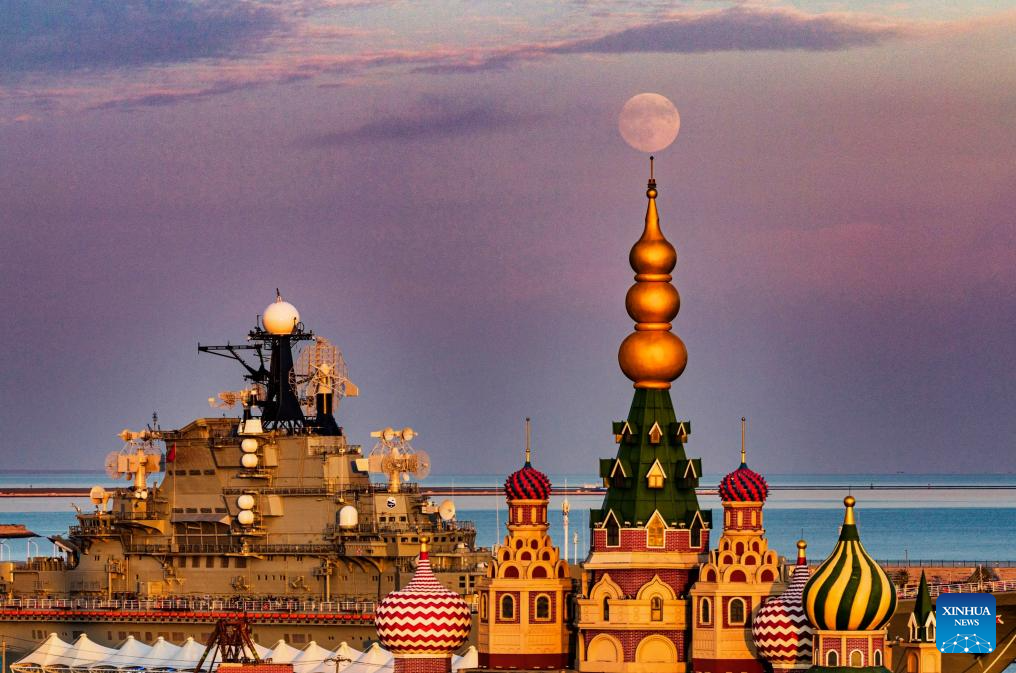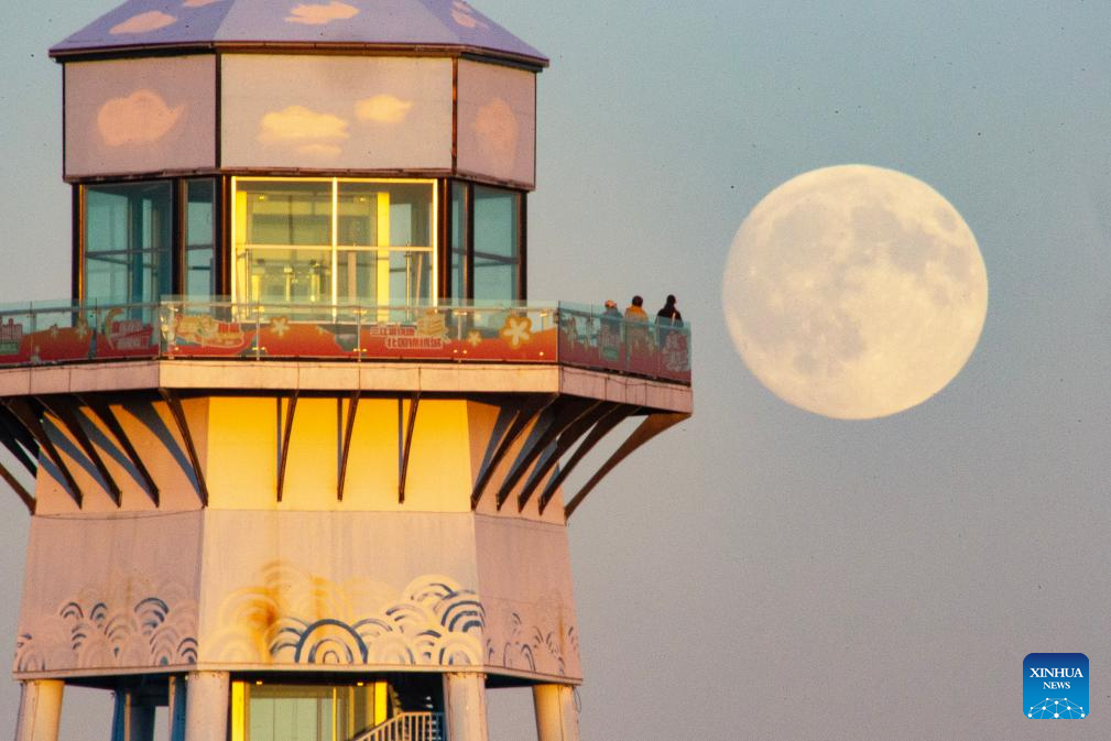 A full moon is pictured near Jingshan Park in Beijing, capital of China, Oct. 6, 2025. Monday marks this year's Mid-Autumn Festival, which is celebrated annually on the 15th day of the eighth month in the Chinese lunar calendar. People across China admire the full moon to celebrate the traditional holiday. (Xinhua/Liu Jinhai)