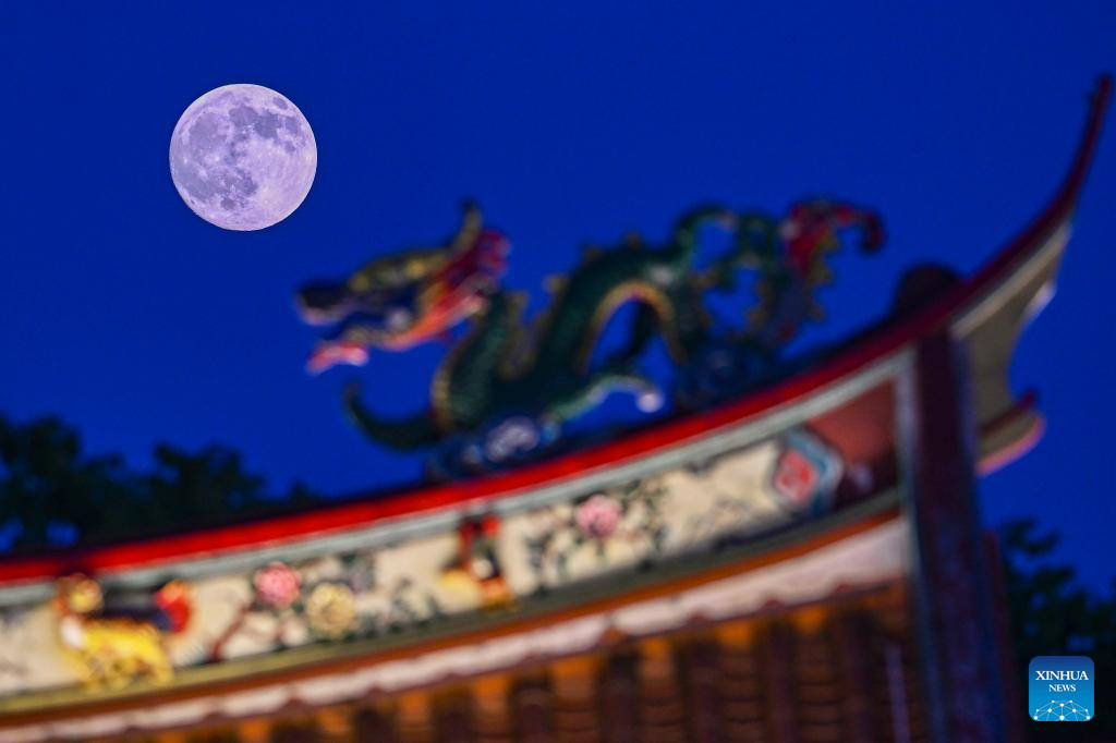 This photo taken on Oct. 6, 2025 shows a full moon over the sky in Shantou, south China's Guangdong Province. Monday marks this year's Mid-Autumn Festival, which is celebrated annually on the 15th day of the eighth month in the Chinese lunar calendar. People across China admire the full moon to celebrate the traditional holiday. (Photo by Yao Jun/Xinhua)