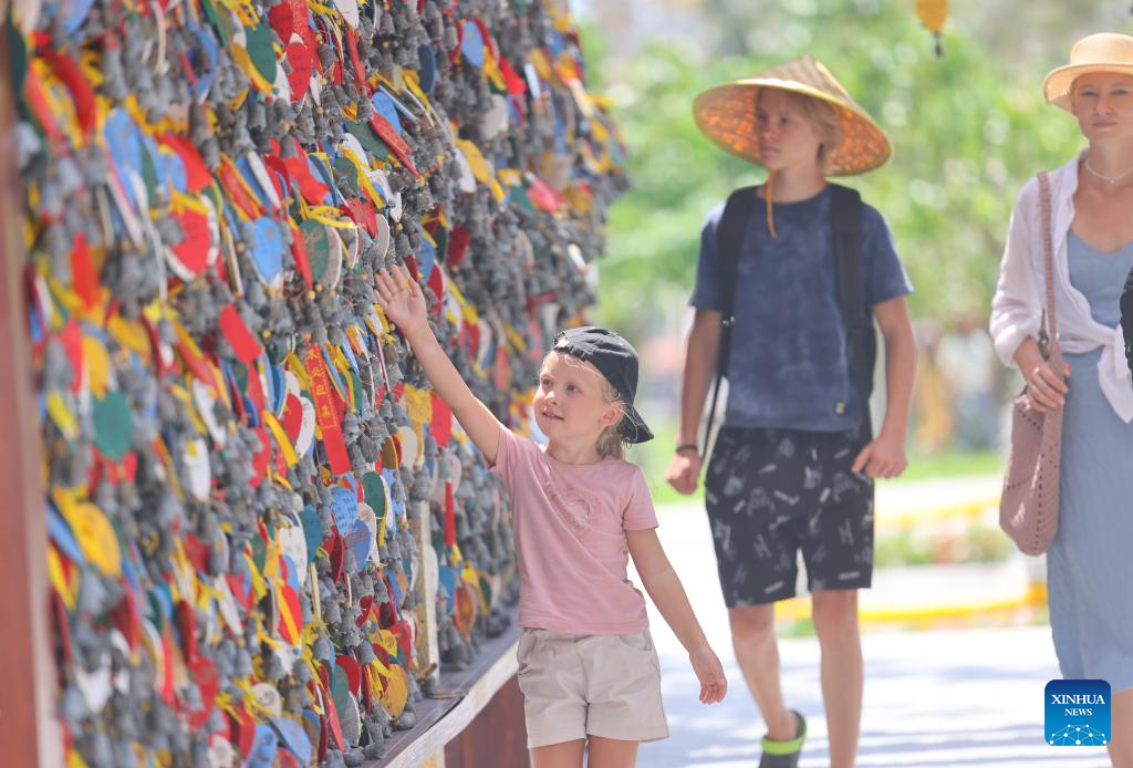 Tourists visit the Nanshan Cultural Tourism Zone in Sanya, south China's Hainan Province, Oct. 7, 2025. Tourists across the country show no sign of fading enthusiasm as the National Day and Mid-Autumn Festival holiday draws to a close. (Photo by Chen Wenwu/Xinhua)