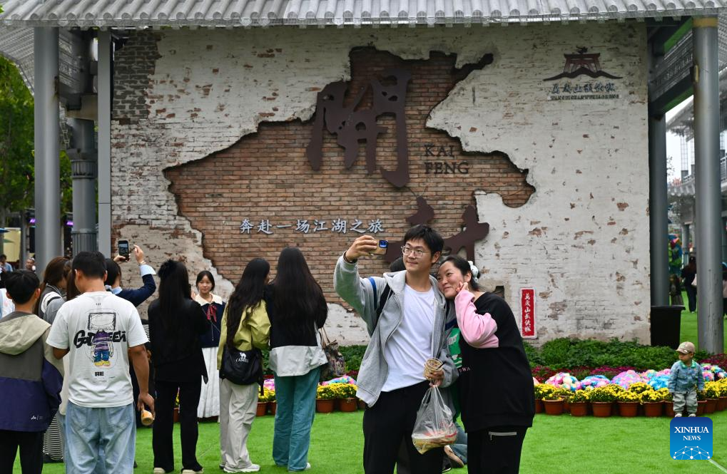 Tourists visit the Wansui Mountain Martial Arts City in Kaifeng City, central China's Henan Province, Oct. 7, 2025. Tourists across the country show no sign of fading enthusiasm as the National Day and Mid-Autumn Festival holiday draws to a close. (Xinhua/Hao Yuan)