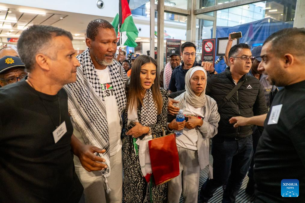 JOHANNESBURG, Oct. 8 (Xinhua) -- Six South African activists from the Global Sumud Flotilla, detained by Israeli authorities while attempting to deliver humanitarian aid to Gaza, returned home on Wednesday in Johannesburg.