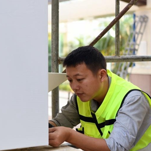 4月10日,工作人員在安裝新聞中心網(wǎng)絡(luò)設(shè)施。