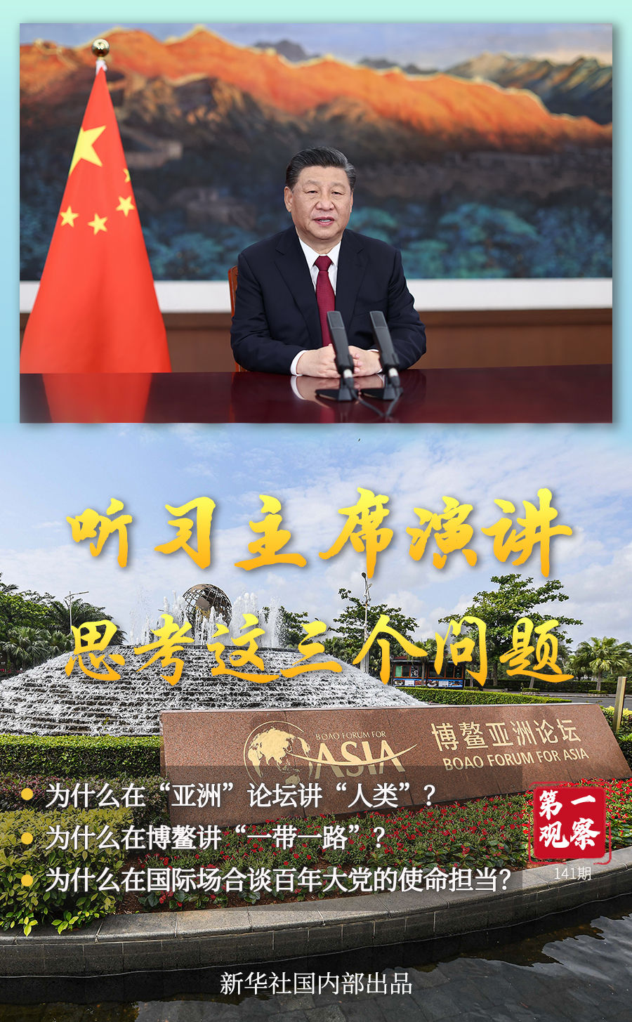 第三個(gè)問題,為何在博鰲這個(gè)國際場(chǎng)合談百年大黨的使命擔(dān)當(dāng)?